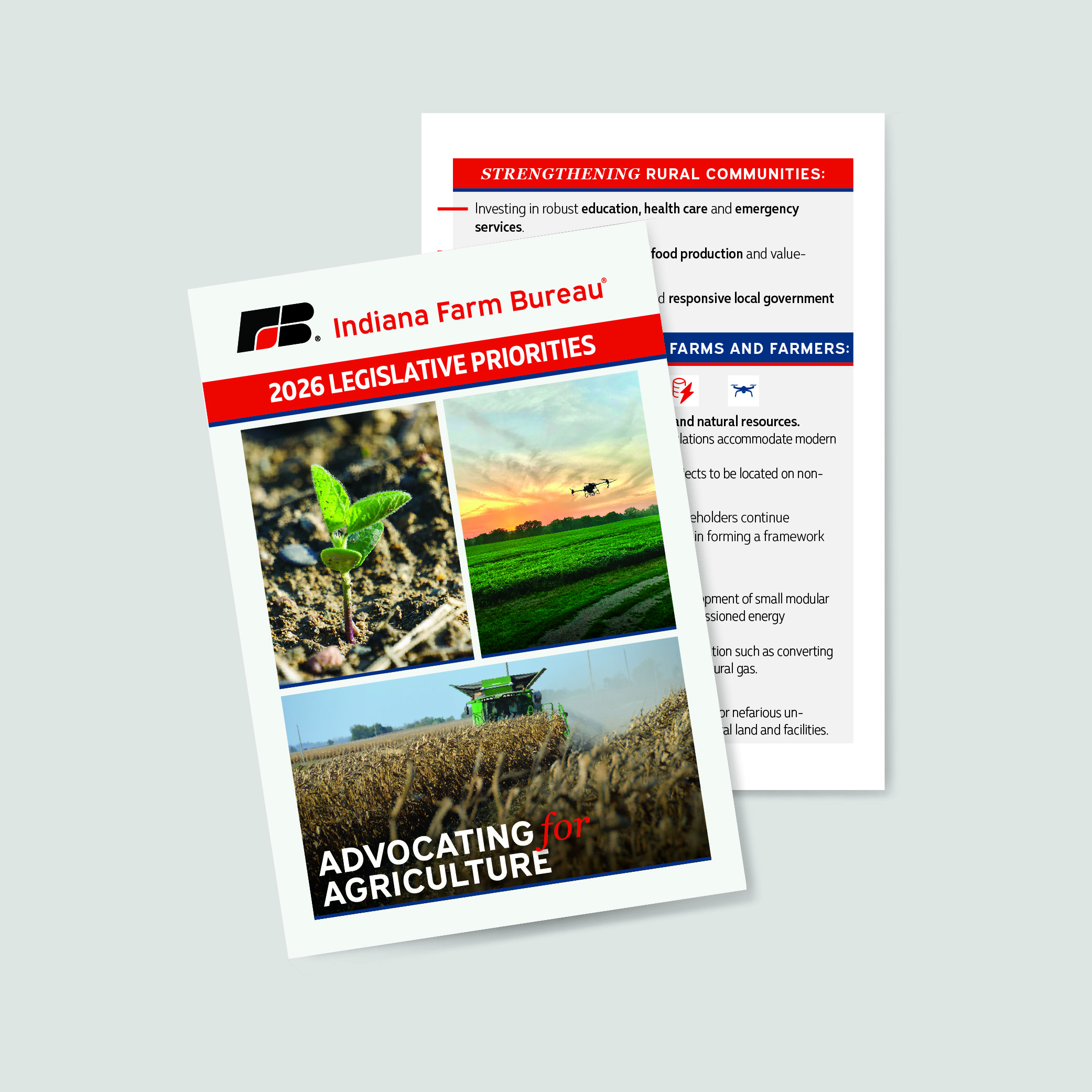 When lawmakers and regulators make decisions about agriculture, rural communities, or property rights, Indiana Farm Bureau speaks with one unified voice – yours. Our grassroots policy process ensures: