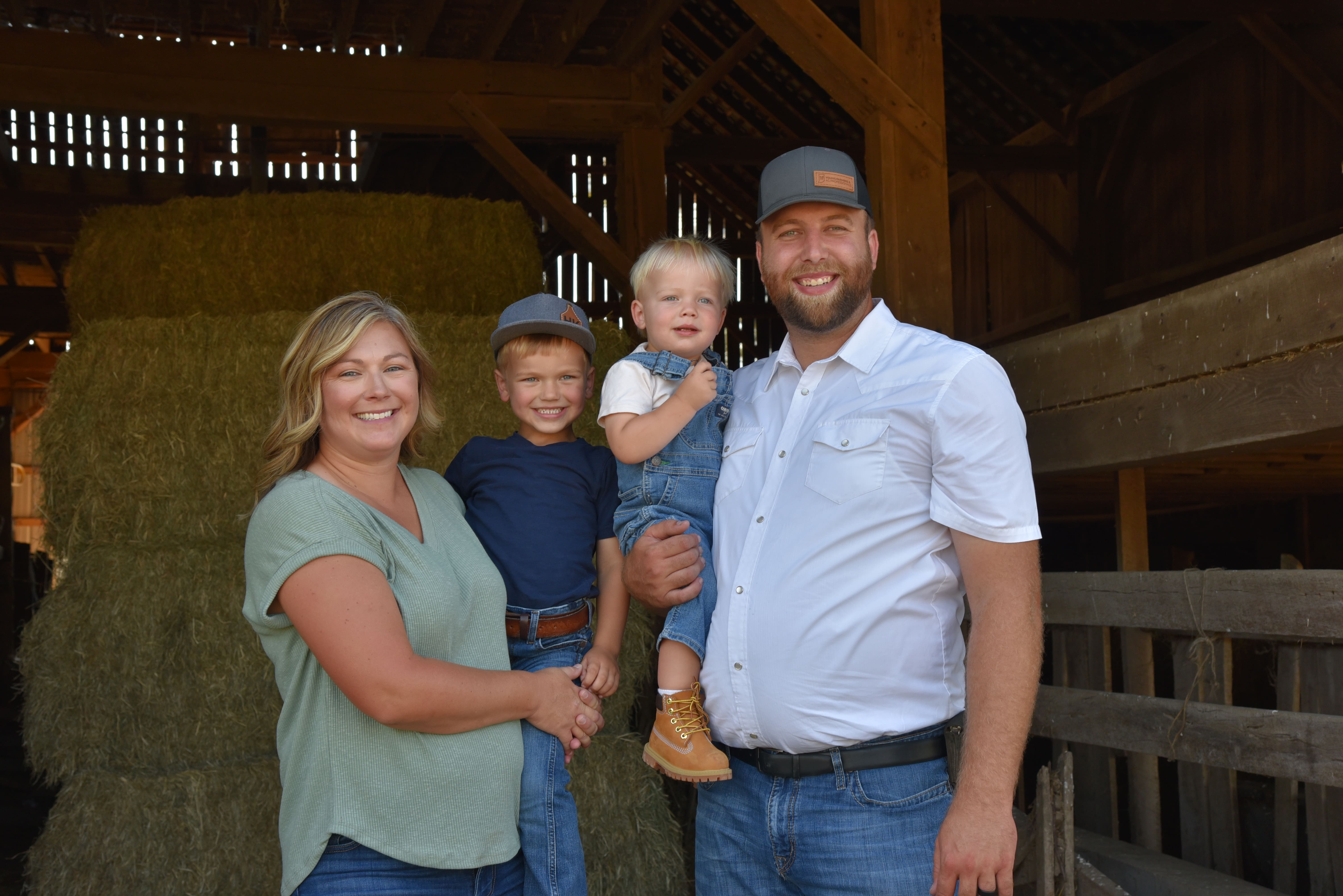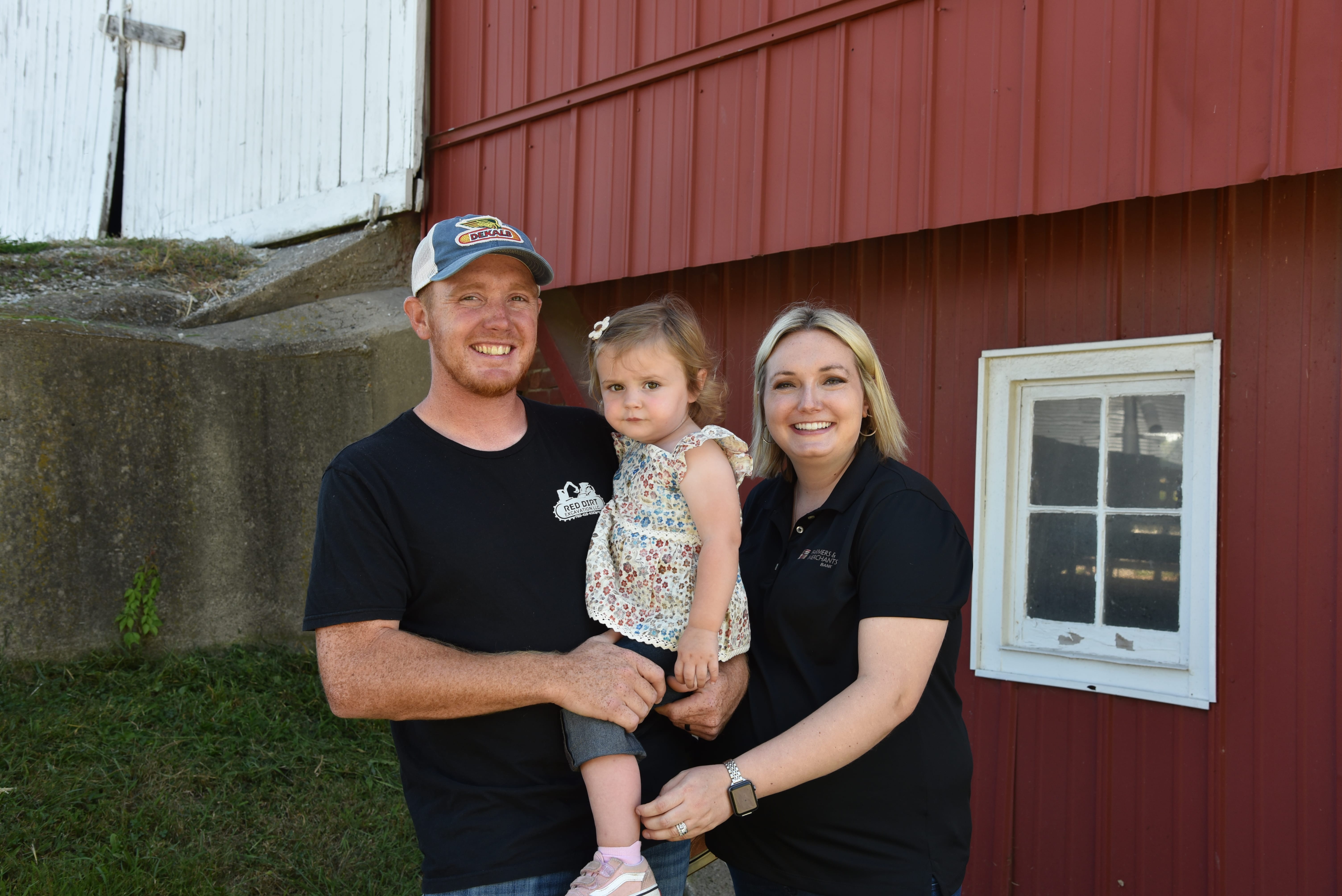 Brock grew up next to his grandfather’s small, diversified operation in Floyd County, which included hay and cattle. After graduating from college, he took over the farm and started adding more acres, row crops and cattle. Laura was raised on a cow/calf operation in Washington County and her family also raised chickens.