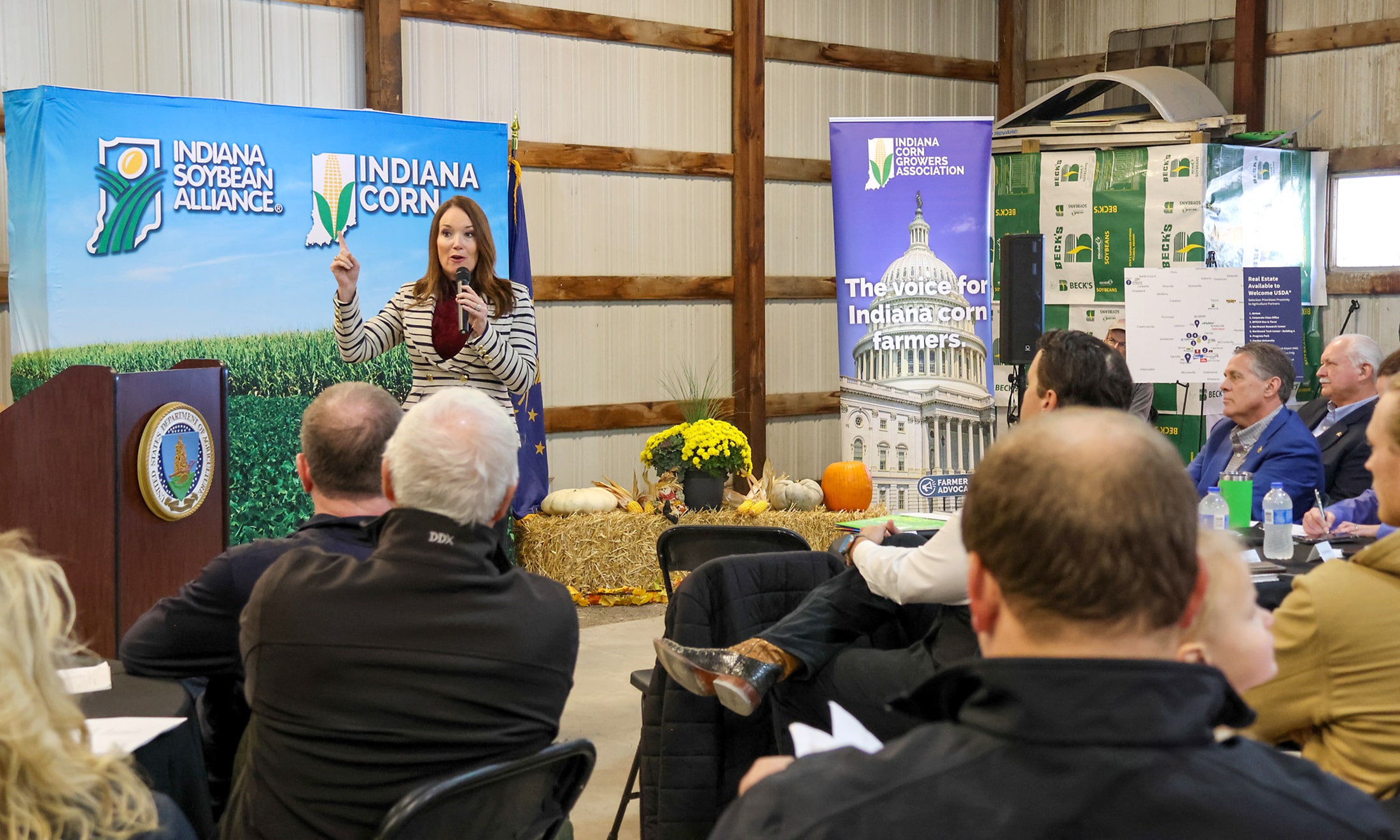 Farm Bureau member Tyler Everett and his family hosted U.S. Agriculture Secretary Brooke Rollins on their Boone County farm on Oct. 30. During her visit, Secretary Rollins met with Indiana agricultural leaders to discuss key issues and the work she and USDA do on behalf of Indiana farmers.