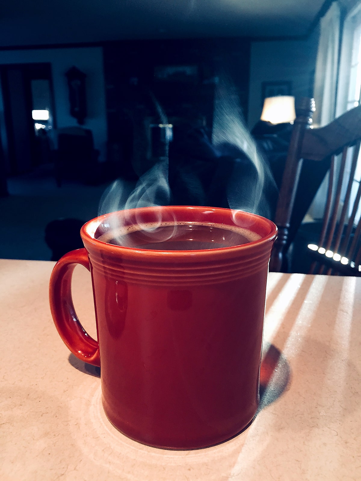 Steam rises from Michelle Horrall of Knox County’s morning cup of coffee.