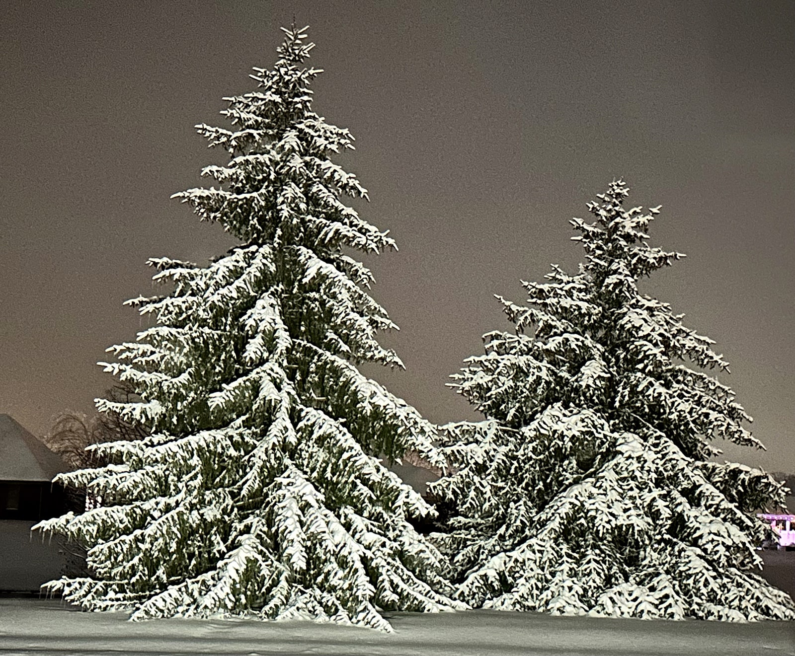 Vanderburgh County’s Scott Berry shared two evergreens with fresh snow at night.